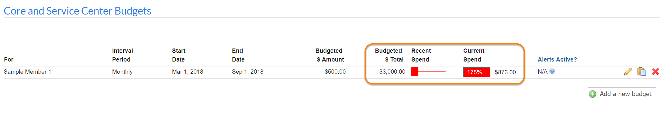 - Budgeted $ Total: This will display the total budgeted amount across for the entire period of time defined.