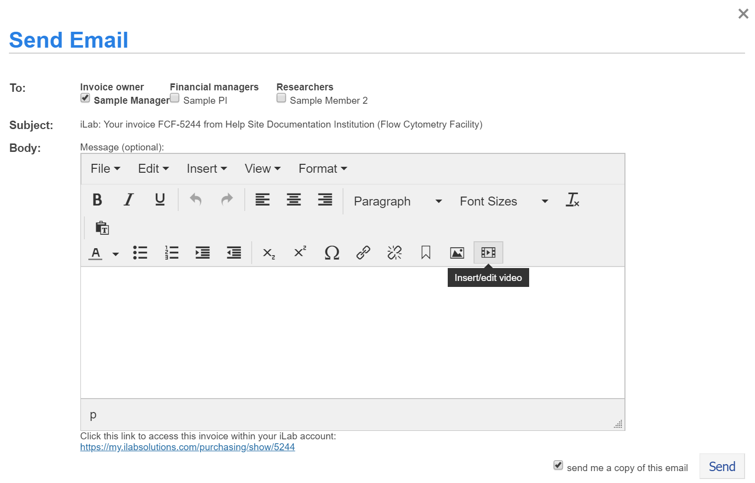 - Owner: This is the person responsible for this invoice in the lab (the Primary Contact defined in the Group Settings)