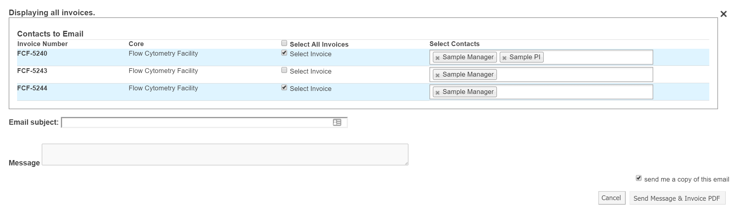 - Mark selected invoices as billed: For Core Administrators and Staff only. Mark all selected invoices as Not Yet Paid.