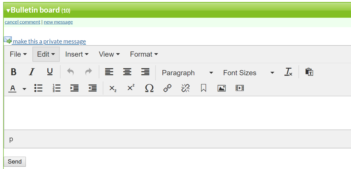To post a comment that will be visible to all lab members, click "new comment", add text and click "Send". You will then need to refresh your browser to see the new comment listed on the bulletin board.