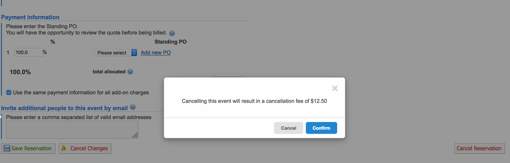 - Save Reservation/ Cancel Changes: Click Save Reservation to save the reservation as currently configured. Click Cancel Changes to go back to the equipment schedule without saving any changes.