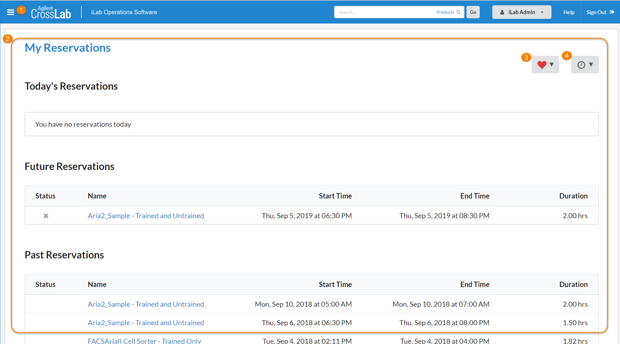 - Overview of reservations: The main section of the My Reservations interface lists your reservations organized by reservations for today, future reservations and past reservations.