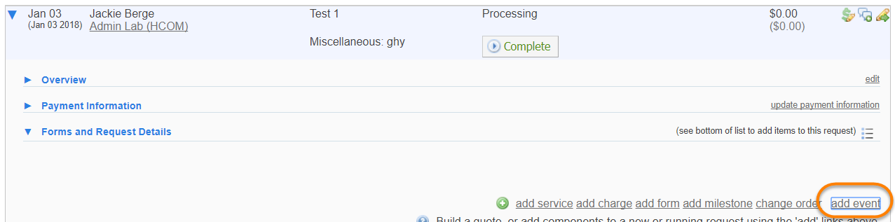 - Quick add events on service requests: Define this field as YES if you would like users to be able to add an event to a service request. The "add event" link will display within the service request. When clicked, it allows the user to schedule a resource.