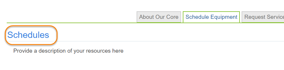 - Always show schedule description: Define field as YES if you would like to display a description for resources. If yes, the description will display as follows. If no, the description link can be clicked on and the description will display. Most groups display the description as it provides valuable information about the resource.