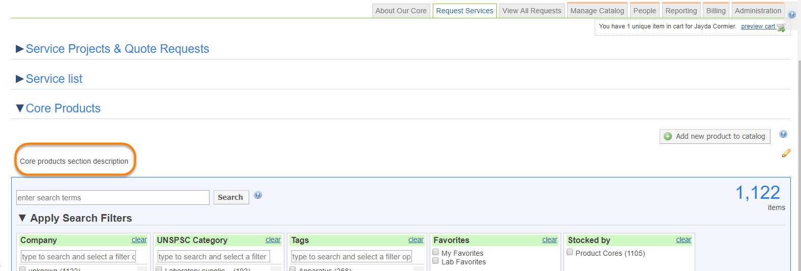 - Core products section description: You may use this box to enter a description for your users to see.