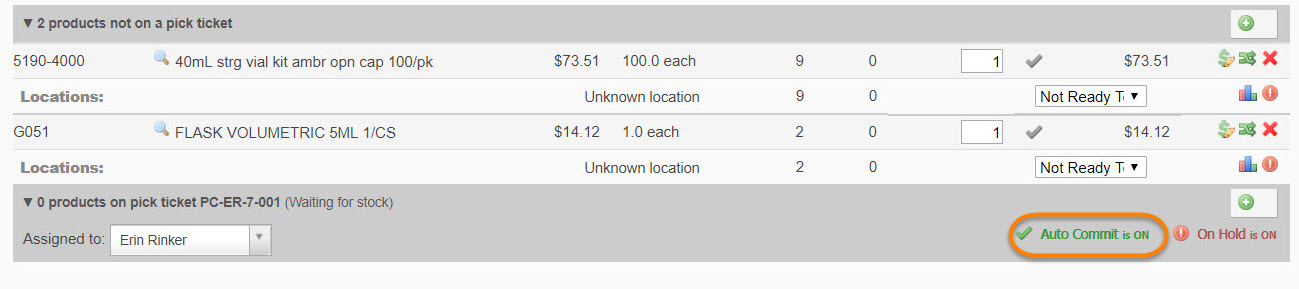 - Turn on the 'auto commit' flag by default on all newly created pick tickets: Define this field as YES if you would like to have line items automatically moved onto the pick ticket as stock becomes available.