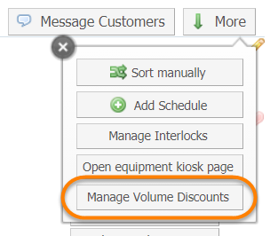 Once Volume Discounts has been turned on by iLab, you can access it through the Schedule Equipment tab by clicking on the "More" button in the top-right corner, then selecting "Manage Volume Discounts."