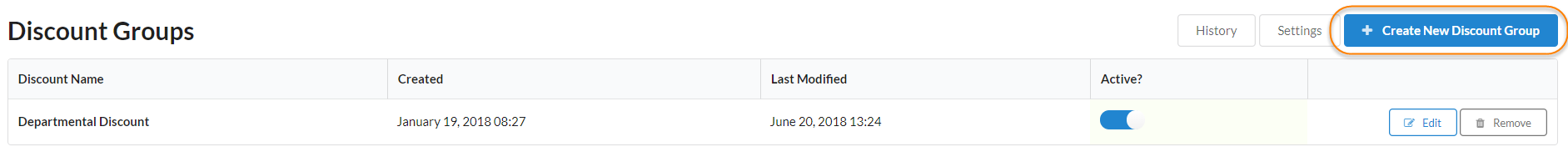 After the above settings have been determined, click on Create New Discount Group to add a discount to your resources.