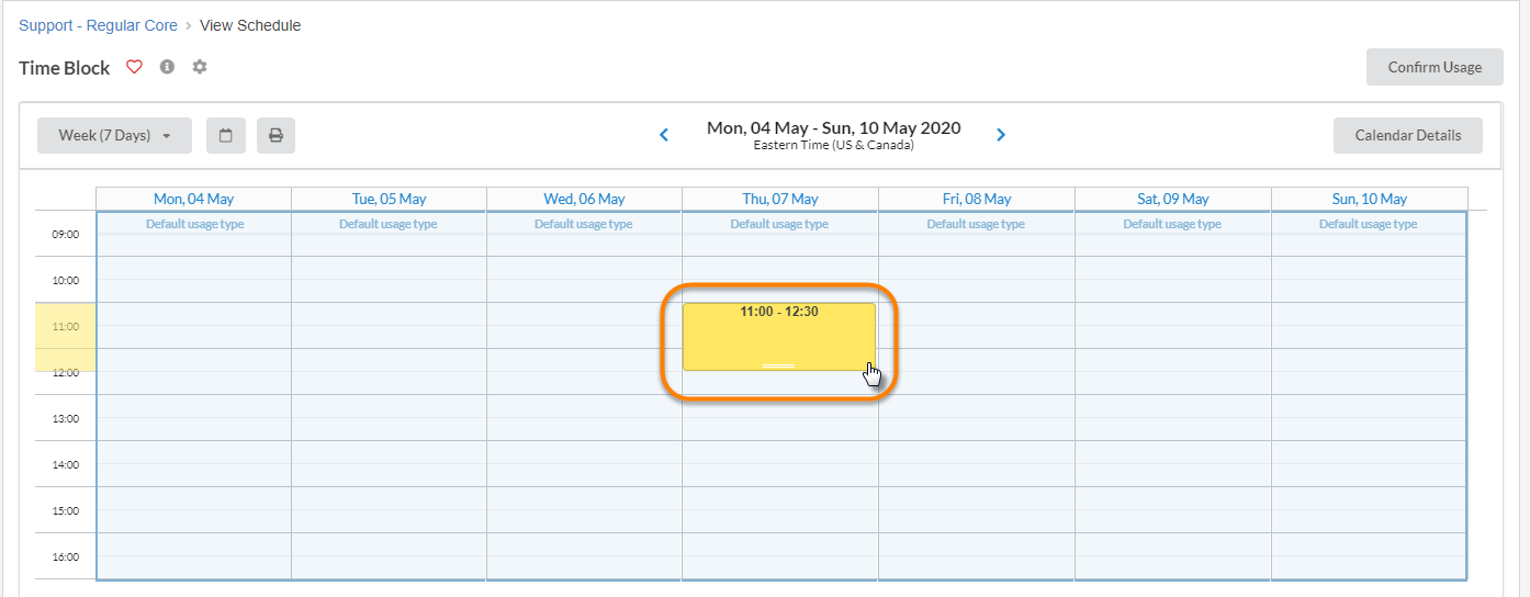 This is how the calendar displays an unavailable time block: