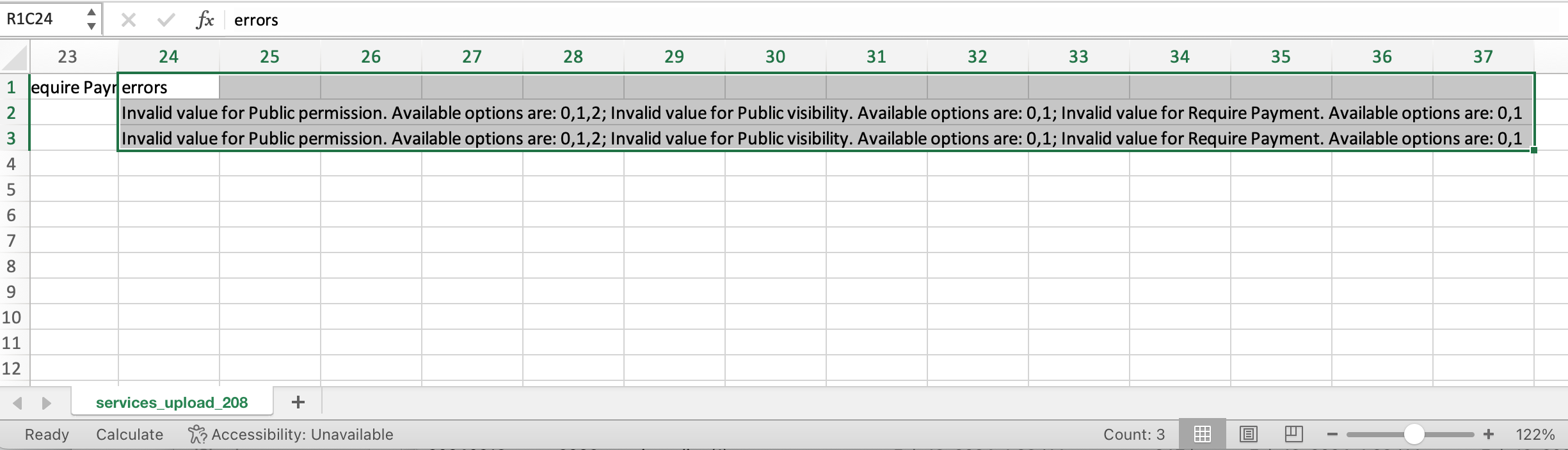 To create services or update prices and visibility of services in bulk via file upload: