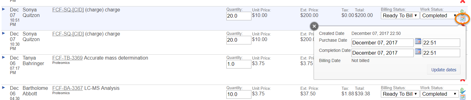 - Adjust Dates: If you need to adjust the date on a charge, click on the calendar icon. The date window will display.
