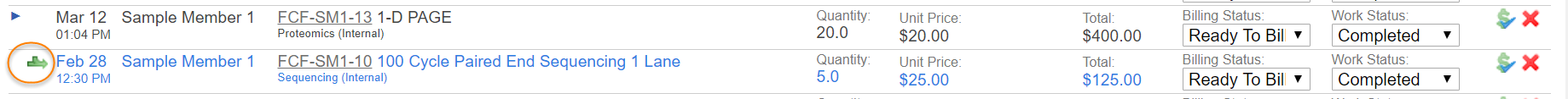 - Change Work Status: You may change the work status of any charge by clicking in the "Work Status" drop-down box. The work status can be updated to Proposed, Financials Approved, Processing, Completed, or Canceled. Note: Only charges in Completed Status are able to be billed.