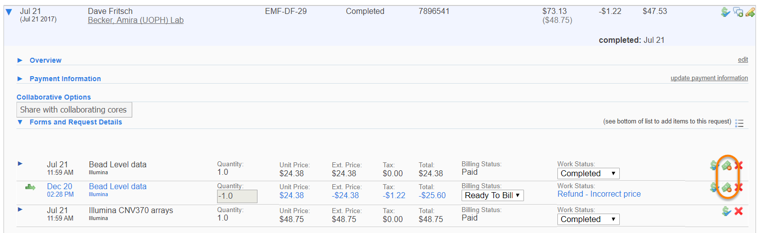NOTE: Refunds are an Institutional Setting that must be turned on by iLab staff. Contact your Institutional Administrator to determine if Refunds are accepted at your institution. Implementing this feature may also require coordination with your institution’s finance group.