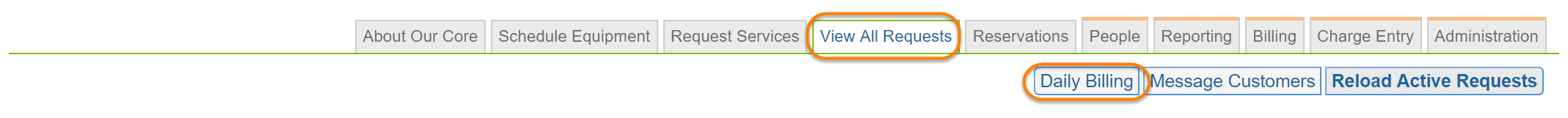 The View All Requests tab has a short-cut link to the Quick Add interface, called Daily Billing.