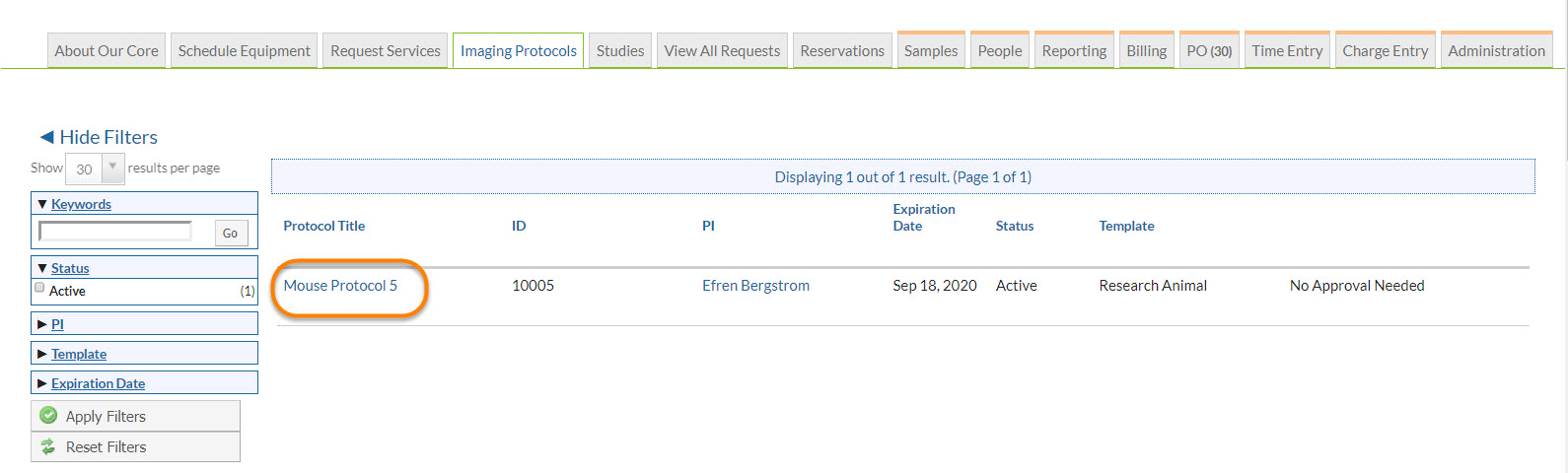 view any research protocols associated with this core.