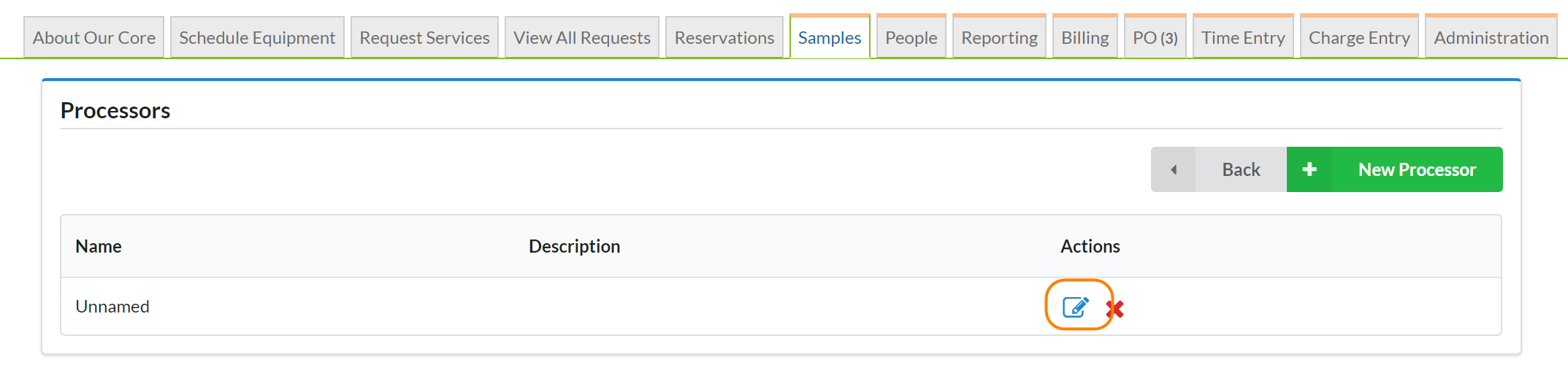 Then, click on the edit pencil icon to the right of the processor. If you do not have a pre-existing processor, please see Creating a Processor.