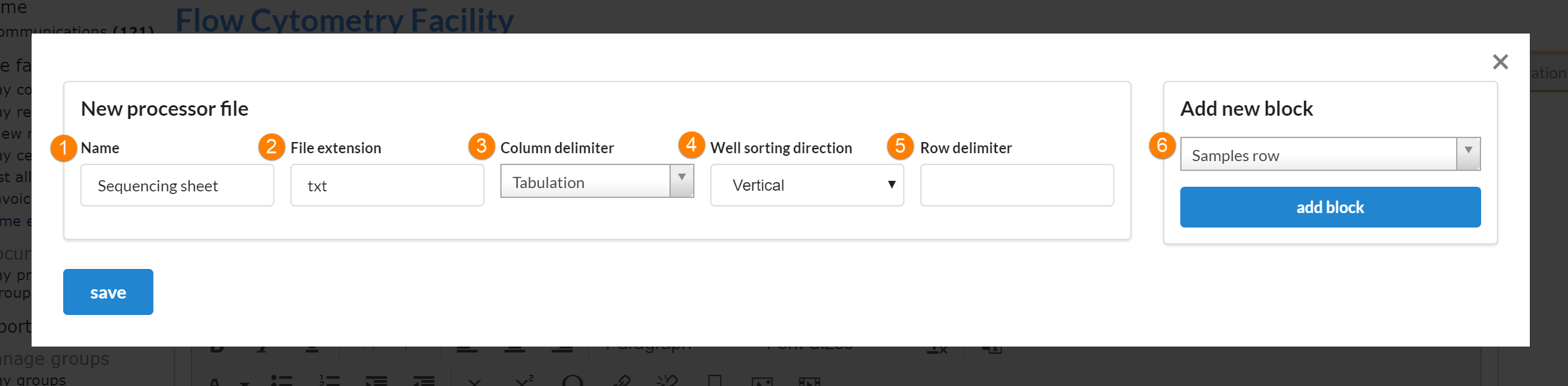 The "New processor file" form will display. Descriptions of each field follow the image.