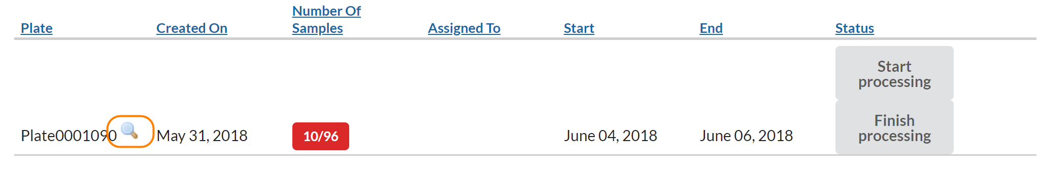 Select the plate's details using the magnifying glass icon next to the plate name.