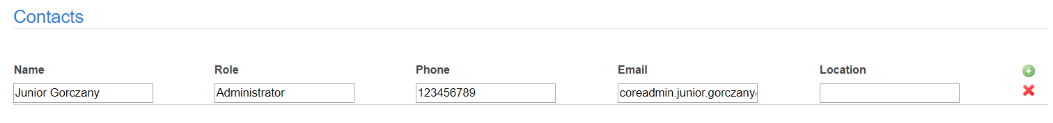 You may add as many contacts as you wish. To add a contact, click on the green plus sign. To delete a contact, click on the red X beside the contact you would like to remove.
