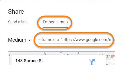 Copy the link provided in the Embed a map tab, and paste it into the text editor field under the Maps section, back on the About our Core settings page.