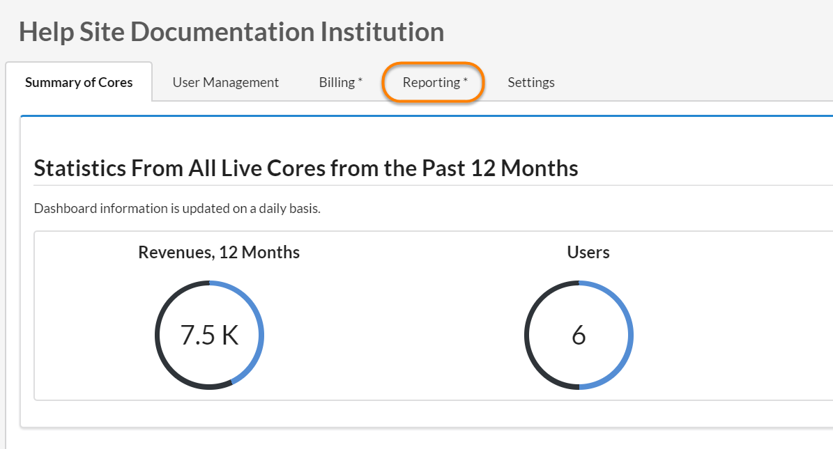 As a Core Administrator, you can access core reporting directly from your Core :