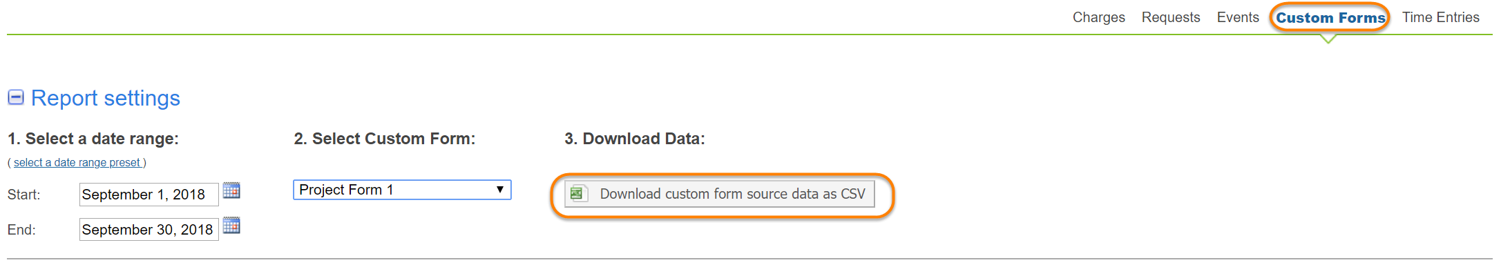 - Custom Forms: download data captured in Custom Forms.