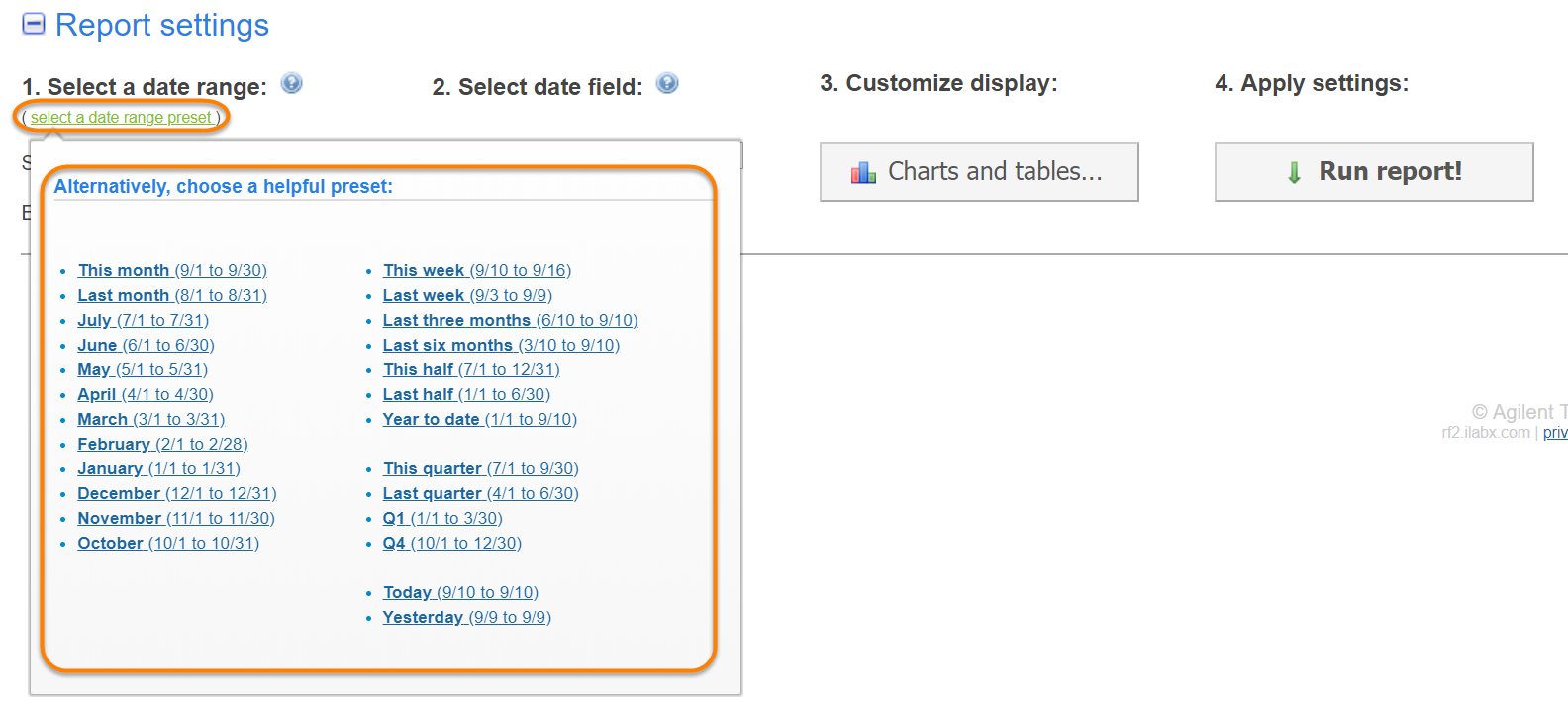 on the "select a date range preset" link to open up a