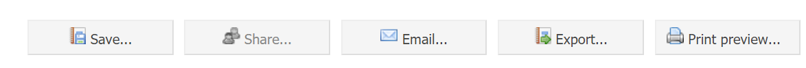 - Report actions: Save reports, share access, e-mail the report, export report data and print the report.