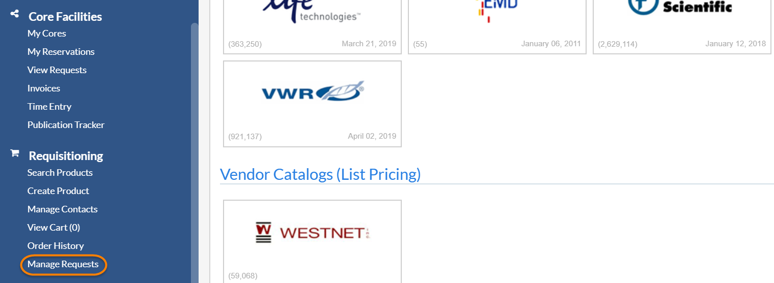Via manage requests: