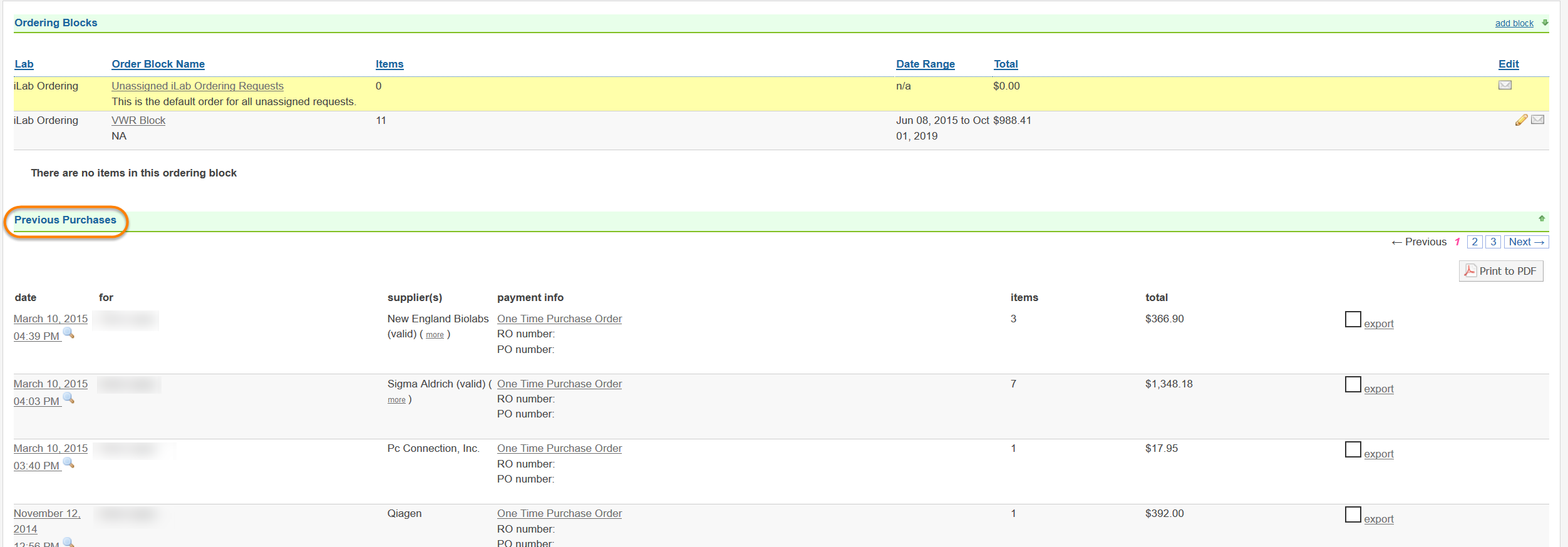 Find Previous Purchases