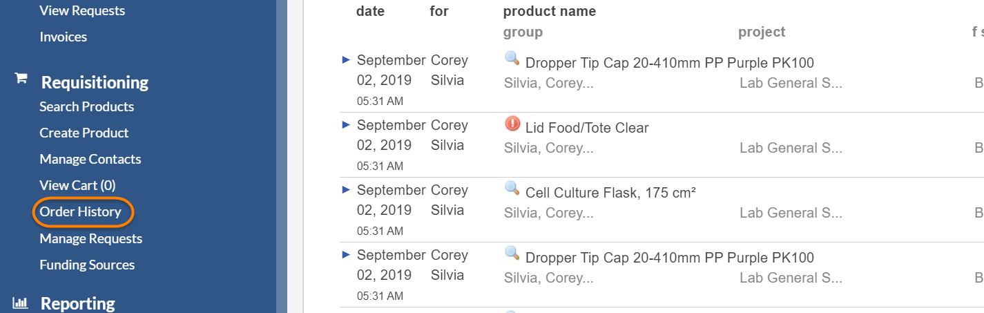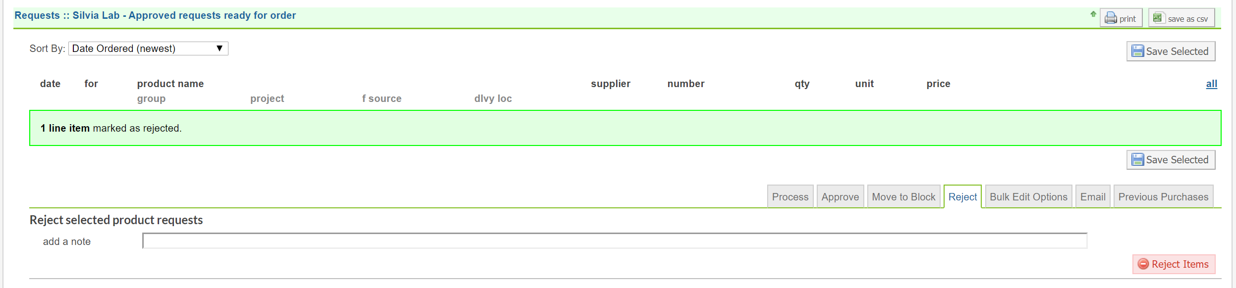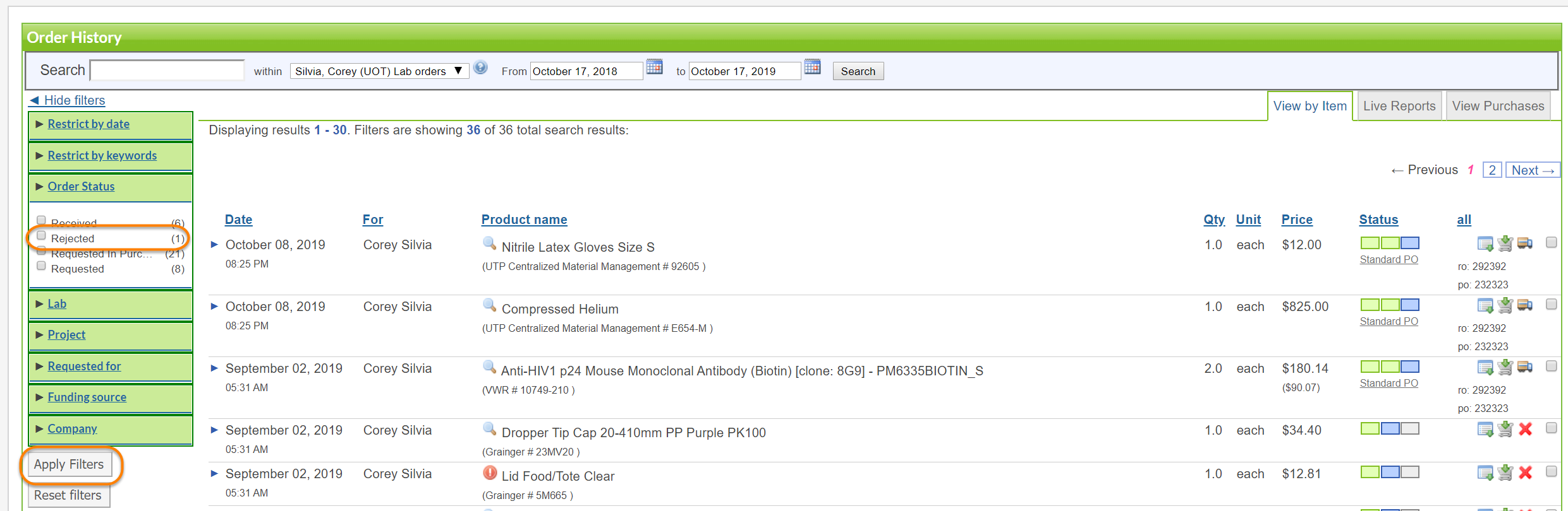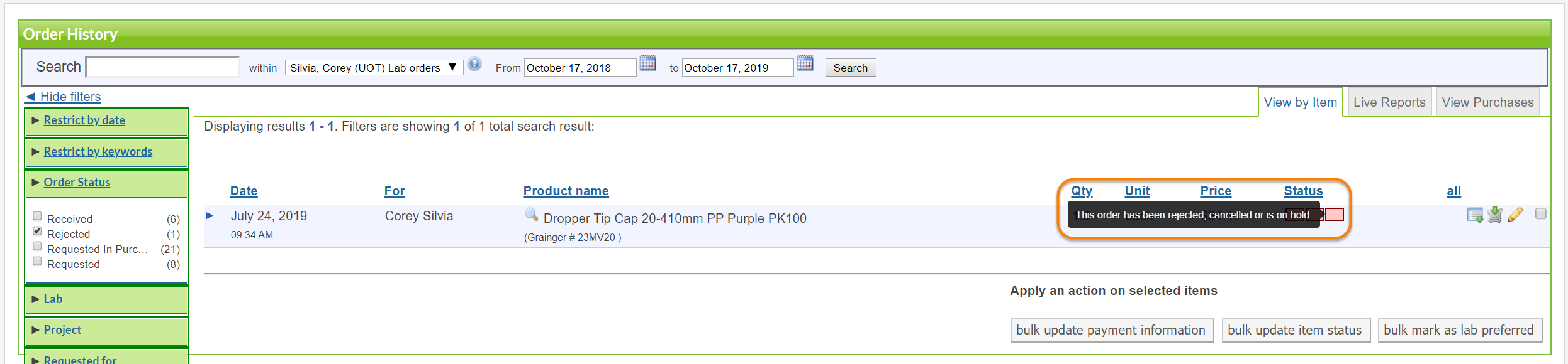 It should be noted that rejected requests can still be viewed by clicking on Order History and filtering for rejected requests.