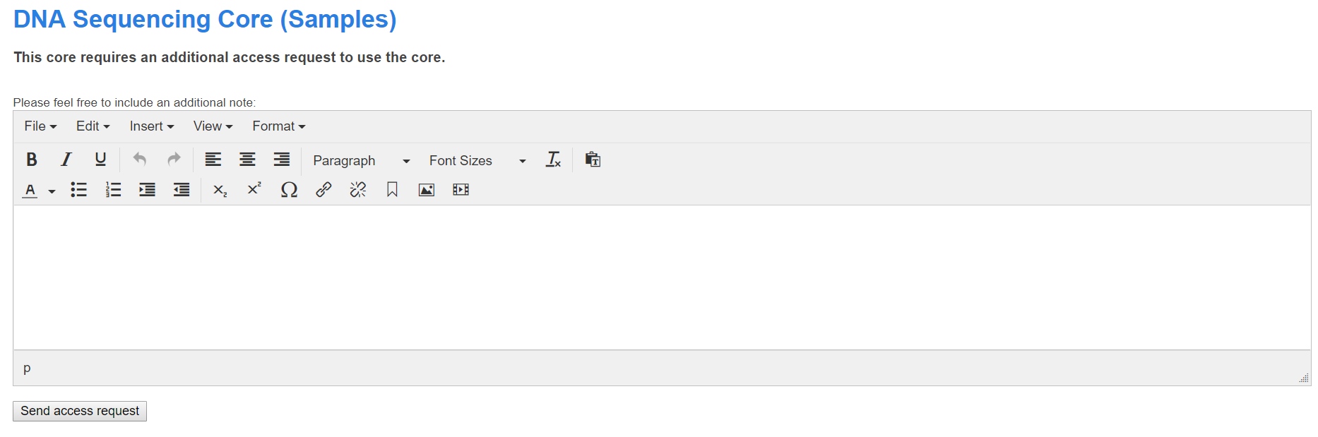 Contact the Core if you have questions about accessing their facility.